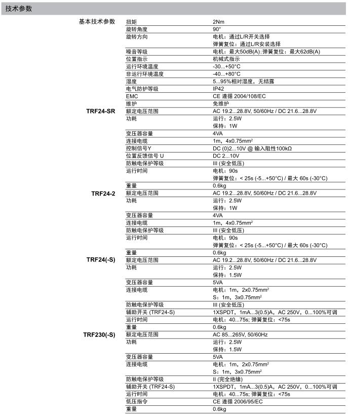 • TRF系列機械式自復位角行程執行器