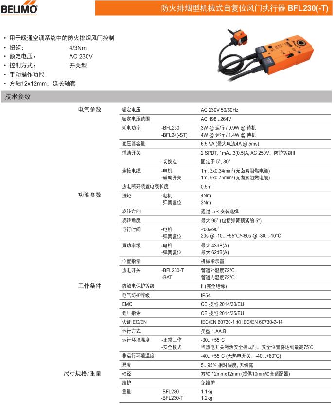 • BFL230防火排煙型機械式自復位風門執行器