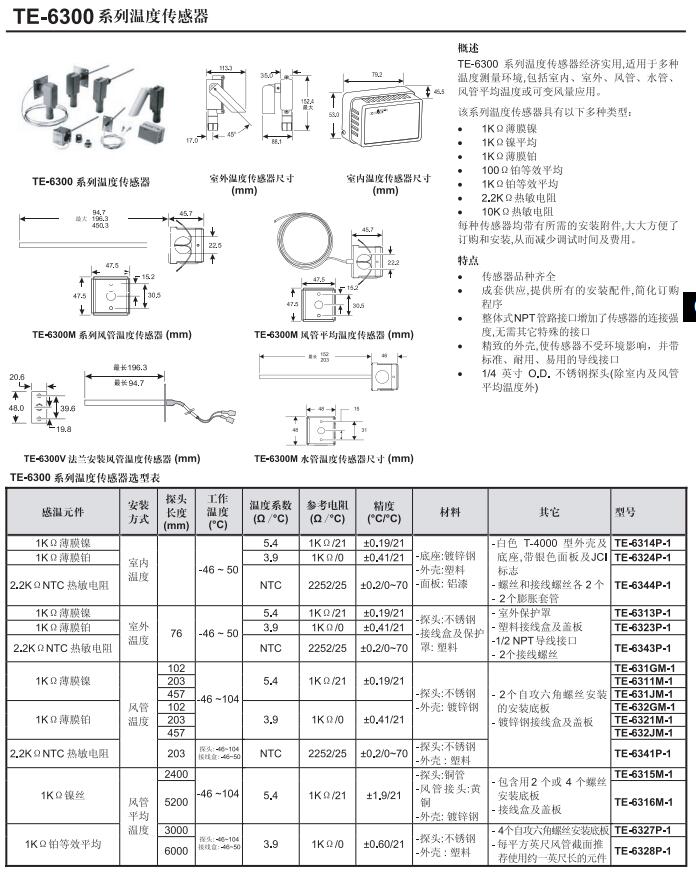 • TE6300溫度傳感器