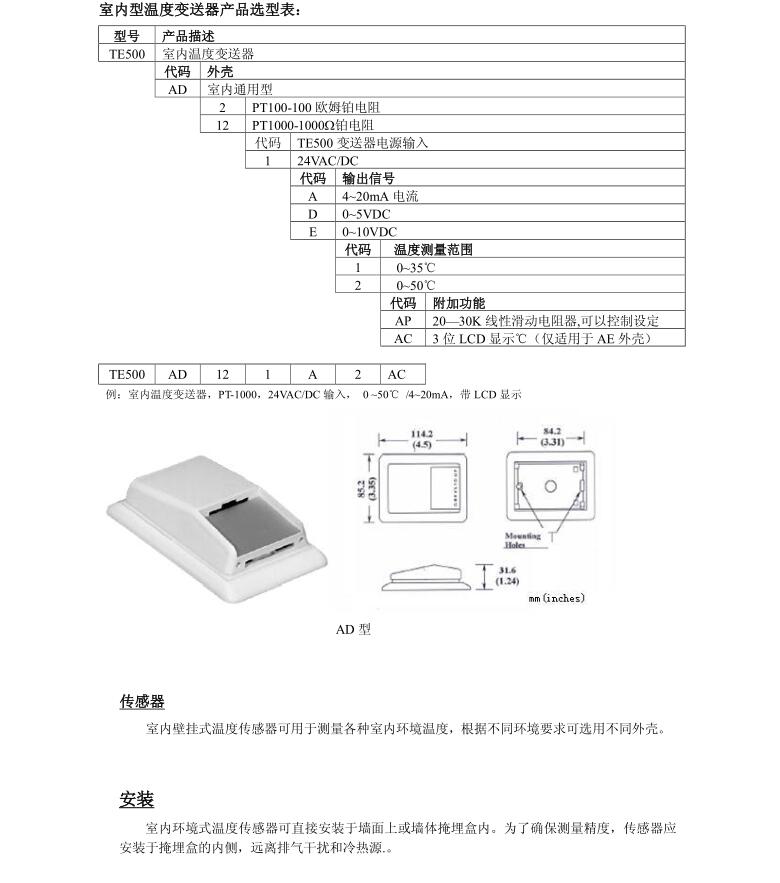 • 室內溫度變送器TE500