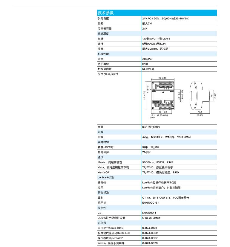 • Xenta401B控制器