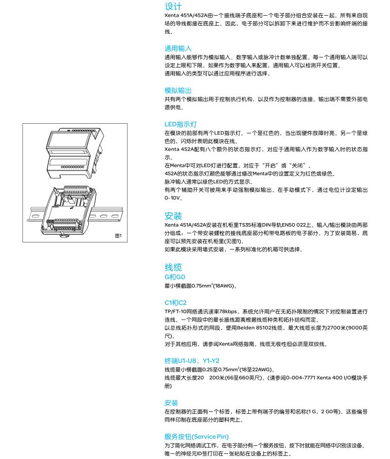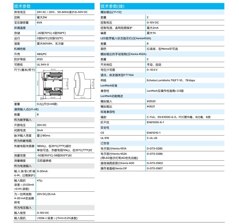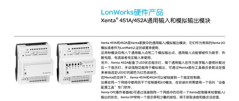 • Xenta451A/452A通用輸入和模擬輸出模塊